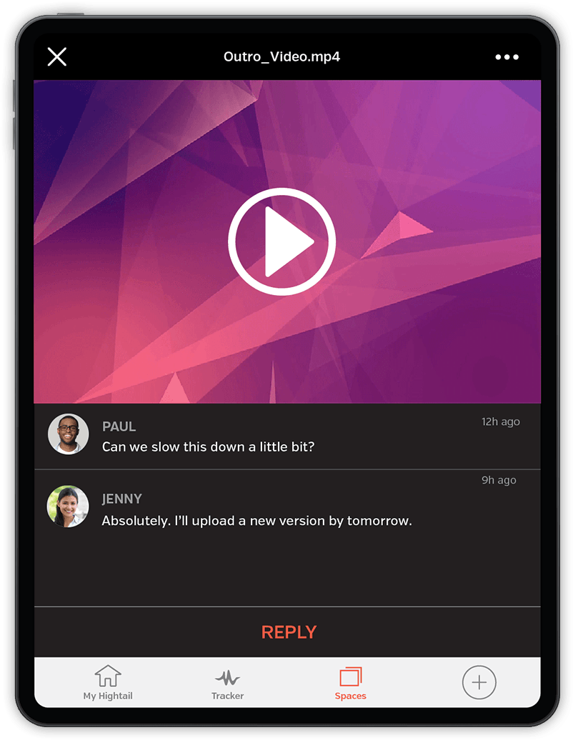 Preview files, leave comments, approve work and upload photos or videos from anywhere with the Hightail mobile app for iPhone and Android devices.